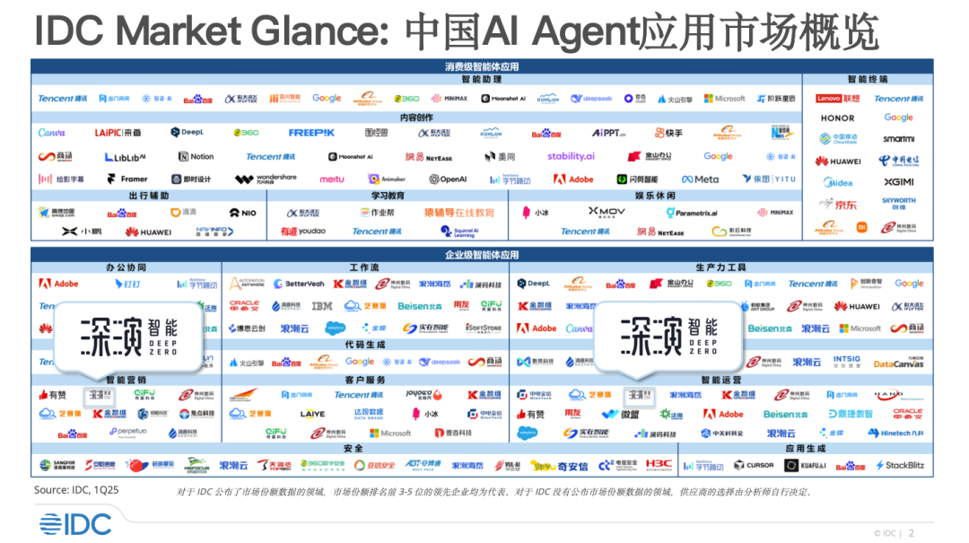 近日,国际数据公司(IDC)正式发布了《IDC Market Glance:中国 AI Agent 应用市场概览,1Q25》(Doc#CHC53057625,2025 年 3 月)研究报告,z6人生就是博智能凭借在 AI 应用领域多年的经验沉淀,以及在 AI 智能体的全方位战略布局,成功入选了报告「智能营销」与「智能运营」两大核心板块。